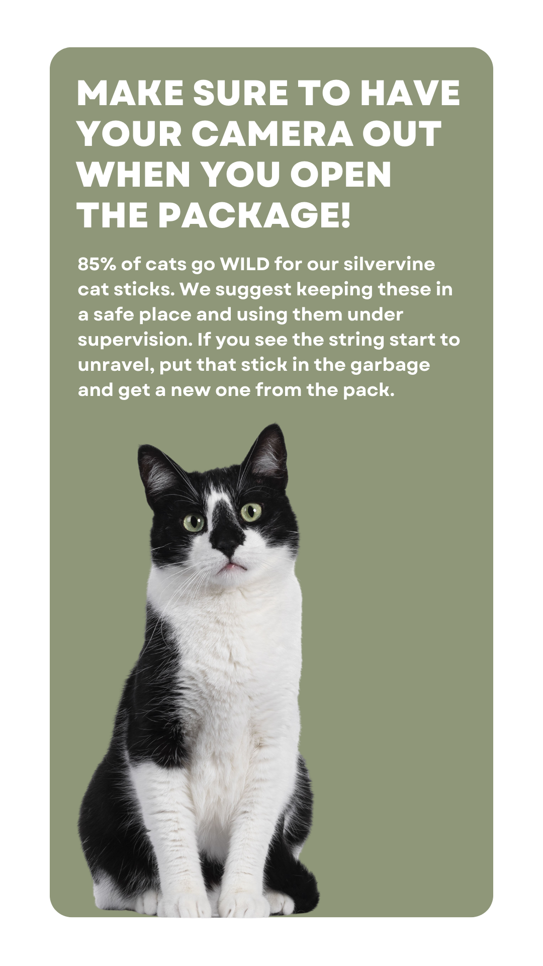 "Shipping was fast and the quality really impressed me. The sticks feel sturdy and well made, not flimsy like most cat toys out there, me gusto mucho!"
